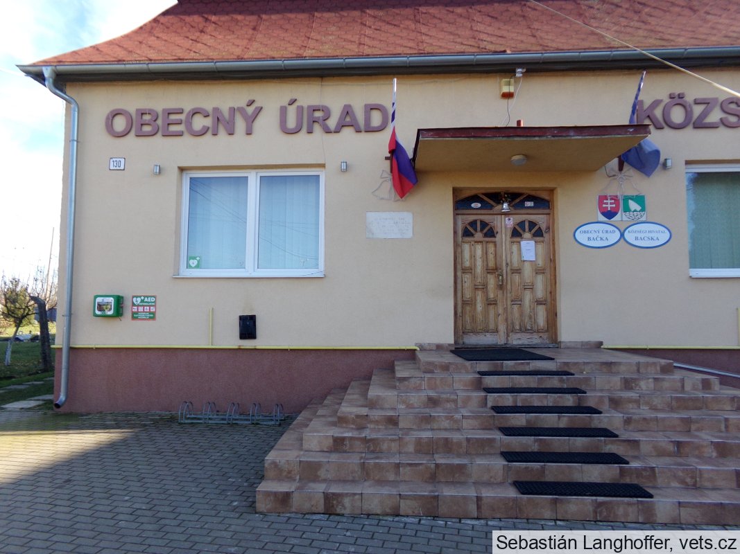Umístění: Bačka, Hlavná 130, priečelie obecného úraduNápis: