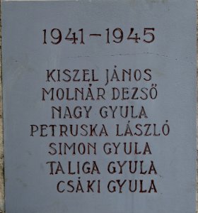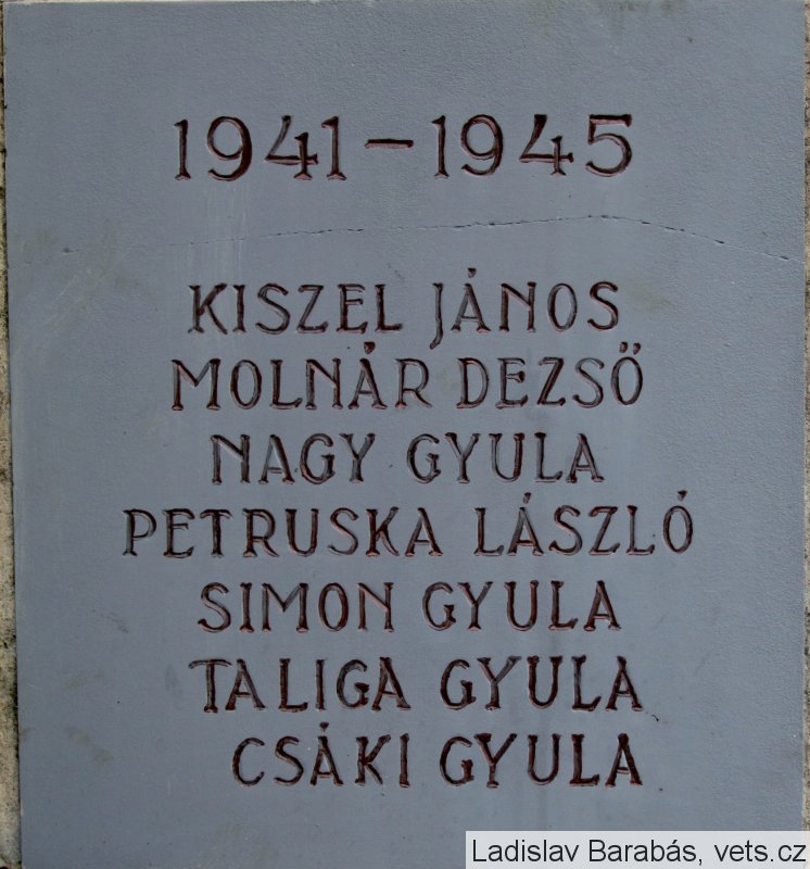 Mená padlých v II. svetovej vojne sú na bokoch pomníka.