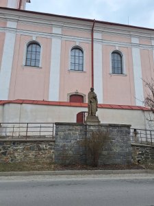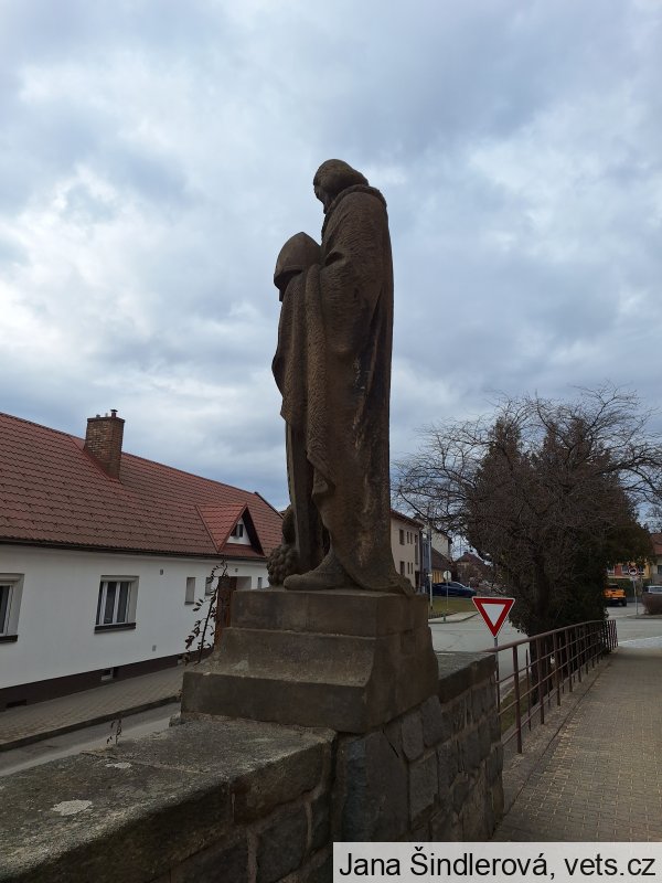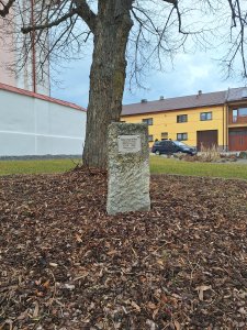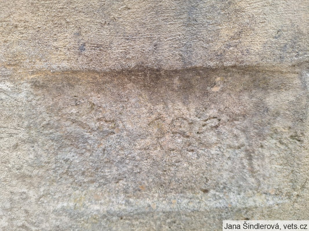 Umístění: Nové Veselí, Na Městečku, kamený sokl u zvýšeného chodníku před kostelem sv. Václavabez nápisu
