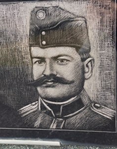 rytina portrétu vojáka v uniformě