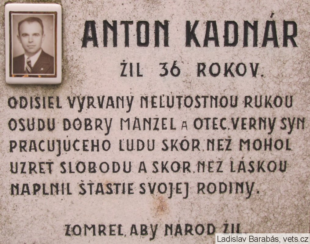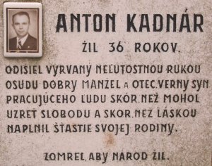 Anton Kadnár sa narodil v roku 1909 vo Vysokej pri Morave. Na jeseň roku 1942 bol ako člen ilegálnej komunistickej strany a za prechovávanie zbraní a streliva pre partizánov uväznený. Po roku väzenia ho prepustili, no 4. februára 1945 ho opäť uväznili. 31. marca 1945, teda štyri dni pred oslobodením Bratislavy bol posledným transportom väzňov z bratislavskej hlavnej stanice prevezený do Mauthausenu, kde zahynul.