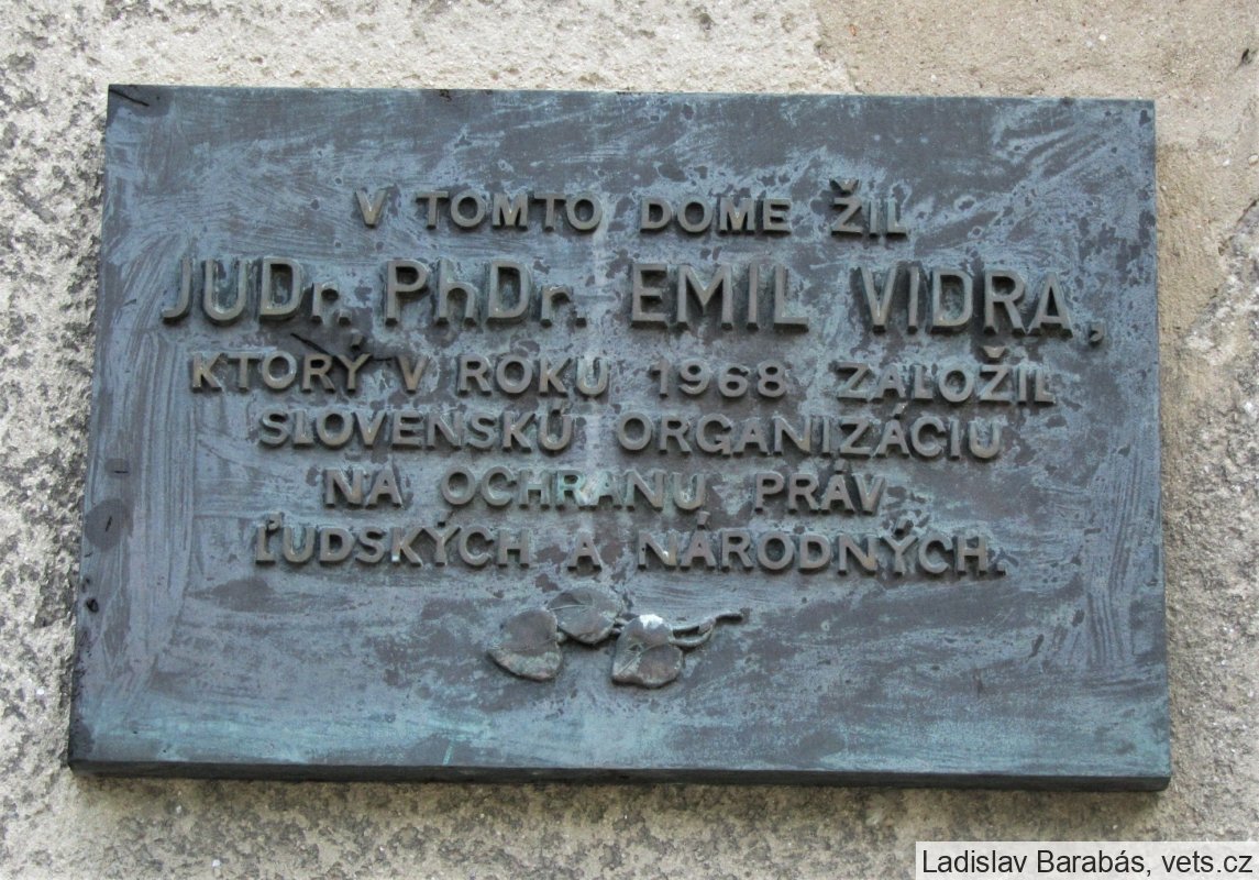 (zdroj: https://watson.sk/index.php?option=com_content&view=article&id=1219:pred-20-rokmi-zomrel-uriansky-rodak-dr-emil-vidra&catid=43:default&Itemid=64 https://historyweb.dennikn.sk/clanky/detail/politicki-vazni-sa-postavili-na-celo-zapasu-o-dodrziavanie-ludskych-prav )