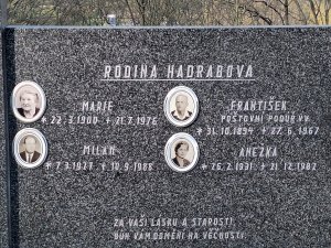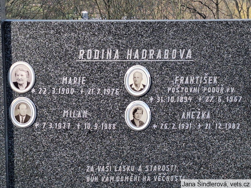 František Hadraba, nar. 31.10.1894 Otradice (vedlejší obec), okr. Třebíč, domovská obec:Otradice, Náměšť, tkadlec, prezenční služba u R-U útvaru: 81.p. pluk, datum a místo zajetí: 9.8.1916 Delatýn, vojín, místo podání přihlášky: Černovice, Bukovina, datum zařazení do legií: 3.6.1917, jednotka: 1. úderný prapor (Kornilova armáda), datum zařazení do druhé legie: 24.12.1917, převelen k útvaru:4. střelecký pluk (Čs. legie v Rusku), desátník, konec v legiích: 29.9.1920 demobilizován.