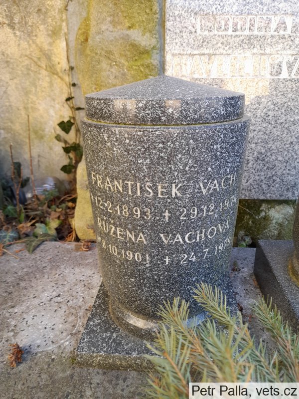 František Vach, nar. 12.2.1893 v Oseku u Poděbrad, lakýrník malíř, během 1. světové války vojín 36. pěšího pluku R-U armády, 20.9.1915 zajat v Počajově, ruský legionář, vojín 1. střeleckého pluku, konec v legiích: 6.2.1920, sloužil v čs. armádě i po r. 1918, zemřel 29.12.1974 v Brně