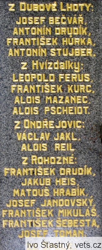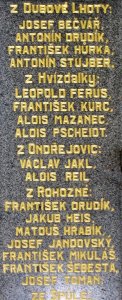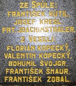 HYNEK ALTMAN, VOJTĚCH BOSÁK, LUDVÍK HUSPEK, VÁCLAV HUSPEK, ANTONÍN CHODORA, FRANTIŠEK JANDA, JOSEF JANDA, JOSEF KVĚTOUN, FRANTIŠEK KOBLER, ALOIS KÖNIG, FRANTIŠEK MIKULÁŠ, ANTONÍN MRVÍK, KAREL MAJER, VÁCLAV MATĚK, KAREL MATĚK, ROMAN MAZANEC, ANTONÍN PAVLÍK, VÁCLAV POLOMIS, PETR OBERHOFER, ANTONÍN REIL, KAREL REIL, FRANTIŠEK RYKAL, JOSEF ŘÍHA, JIŘÍ SOUŠEK ČENĚK ŠKACH, FRANTIŠEK TERČ, JINDŘICH TAUŠEK, EMANUEL VITÁK, LEOPOLD SEIDL.
