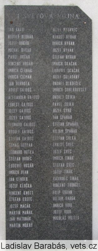 JÁN BAKO, RUDOLF BEDNÁR, JOZEF BUGÁR, MICHAL BUGÁR, PAVEL BUGÁR, VINCENT BUGÁR, IMRICH ČERNÁK, IMRICH ČIČMAN, JÁN DOBROTA, ADOLF GAJDOŠ, ALEXANDER GAJDOŠ, ERNEST GAJDOŠ, JOZEF GAJDOŠ, JOZEF GAJDOŠ, LEONARD GAJDOŠ, RUDOLF GAJDOŠ, ŠTEFAN GAJDOŠ, TOMÁŠ HOPPAN, LEONARD HOŤKA, ŠTEFAN HUDEC, ĽUDOVÍT HUSÁR, IMRICH IVAN, JÁN KENDER, JOZEF KĽUČKA, VINCENT KNOTT, ŠTEFAN KOSEC, JOZEF MACÁK, MARTIN MAŇÁK, JÁN MATUNÁK, MARTIN MOKRÝ, JOZEF MYJAVEC, ARNOST RYBAN, IMRICH RYBAN, JOZEF RYBAN, ŠTEFAN RYBAN, IMRICH SKAČAN, ĽUDOVÍT SKAČAN, JOZEF SKLADANÝ, IMRICH SOBLAHOVSKÝ, OHDREJ SOJKA, PAVEL SOJKA, JOZEF SYRO, JÁN ŠPAŇÁR, ŠTEFAN ŠPAŇÁR, VILIAM ŠPAŇÁR, ŠTEFAN ŠULKA, ERNEST ŠVEC, JOZEF ŠVEC, IMRICH TINÁK, ŠTEFAN ŠVEC, JOZEF TINÁK, VAVRINEC TINÁK, VINCENT TRUNGEL, FILIP TURAN, VILIAM VARGA, IMRICH VIDO, JOZEF VIDO, MIKULÁŠ VOJTEK