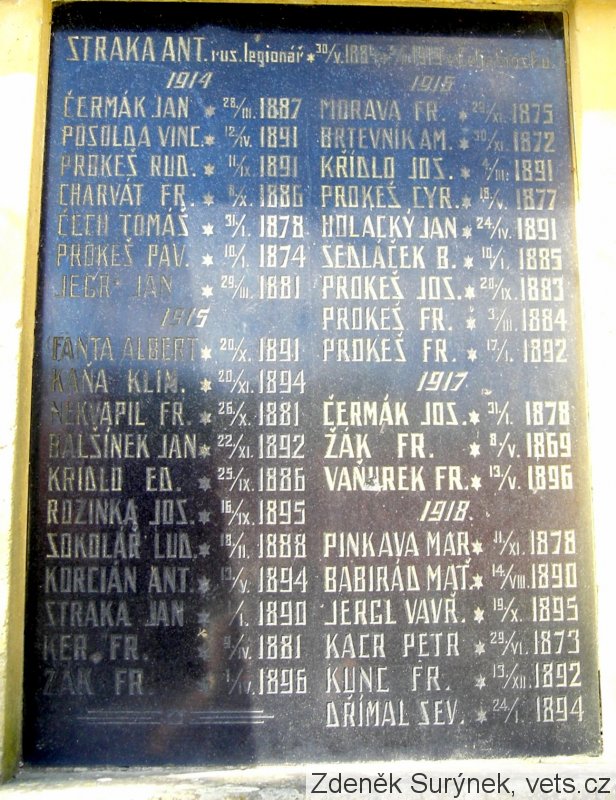 STRAKA ANT. RUS. LEGIONÁŘ *30./V.1884, +5./III.1919 V ČELJABINSKU