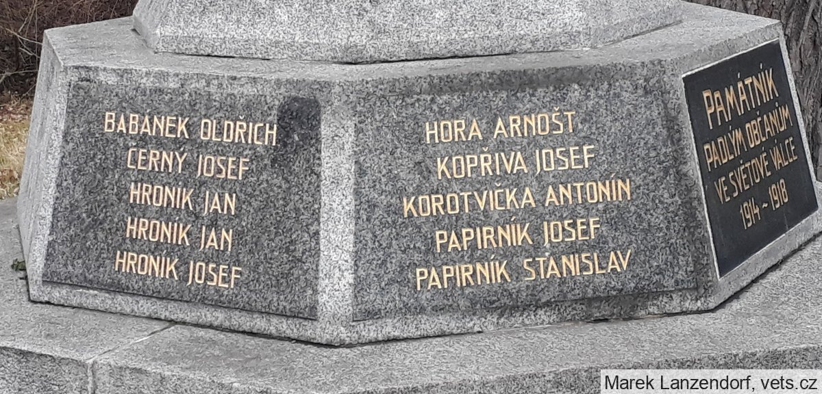 BABÁNEK OLDŘICH, ČERNÝ JOSEF, HRONÍK JAN, HRONÍK JAN, HRONÍK JOSEF, HORA ARNOŠT, KOPŘIVA JOSEF, KOROTVIČKA ANTONÍN, PAPIRNÍK JOSEF, PAPIRNÍK STANISLAV, RICHTR ANTONÍN, ŠMEJKAL ANTONÍN, ŠMEJKAL KAREL, UHLÍK VÁCLAV, VÁŇA JOSEF, VÁŇA VÁCLAV, VESELÝ VÁCLAV, ŽELEZNÝ ARNOŠT, ŽELEZNÝ ROBERT