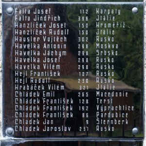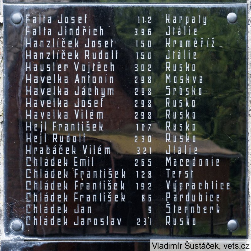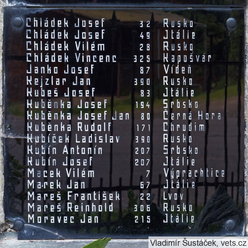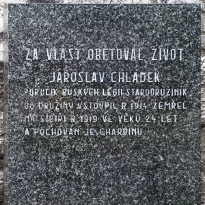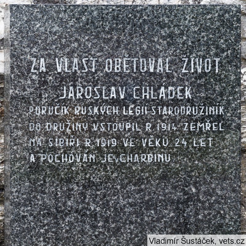 Chládek Jaroslav, nar. 27.4.1893, Výprachtice. V RU armádě sloužil u 30. zeměbraneckého pěšího pluku jako vojín. Zajat 21.11.1914, St. Sandec, Halič. Do ČS legií v Rusku se přihlásil 11.1.1915. Zařazen 22.1.1915 jako vojín v České družině. Zemřel na srdeční vadu 17.2.1919 jako poručík 1. střeleckého pluku, pochován na hřbitově Charbin.