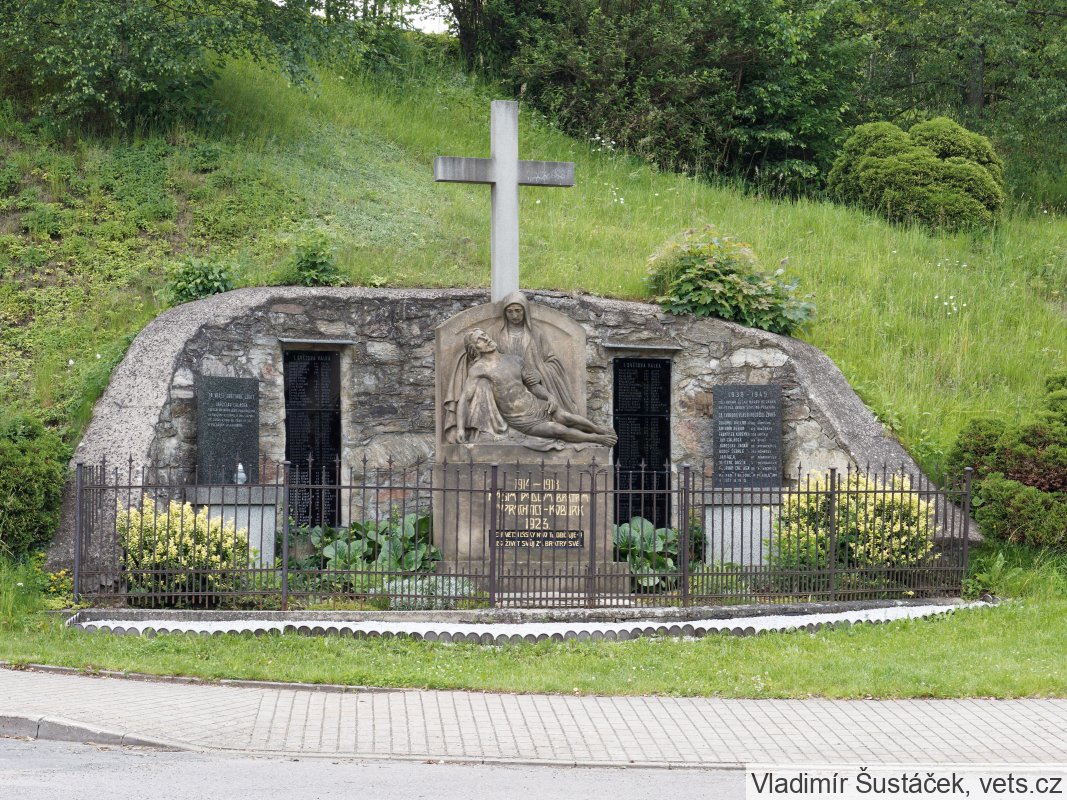 Pomník byl původně projektován na hřbitov, ale zvítězil názor, že by měl být na hojněji navštěvovaném místě. Obecní zastupitelstvo svolilo k postavení pomníku ve středu obce na rozcestí mezi starou a novou školou a darovalo kámen do základů z obecní skály. Slavnostní odhalení a posvěcení pomníku se konalo 5. srpna 1923.