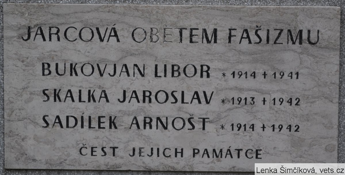 Umístění: Jarcová, před budovou obecního úřadu/hasičské zbrojniceNápis: