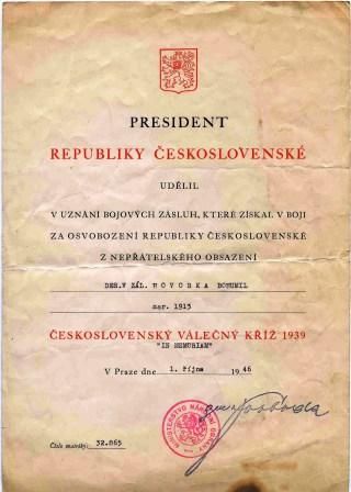 - vyznamenán Československým válečným křížem 1939 in memoriam.