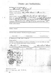 - 8.5.1945 byl vyslán s několika dalšími barikádníky zlikvidovat ostřelovače (vojáky SS a patrně civilní osoby), kteří stříleli z vil v prostoru Barrandov. Skupina se pohybovala v polích na Barrandově směrem k vilám (tehdejší název U Višňovky).