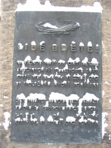 Deska pochází z dnes již zaniklé obce Třebušice (obec musela ustoupit těžbě uhlí).