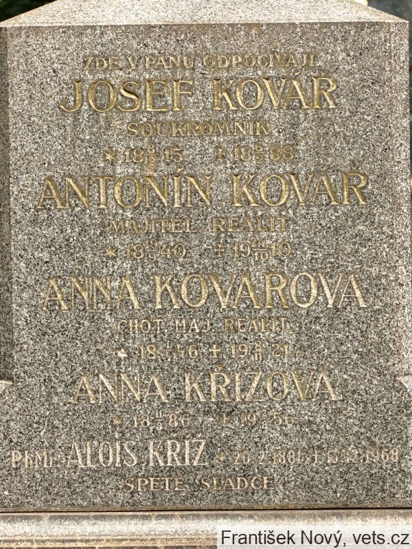 (Zdroj: Kovařík, Petr – Klíč k pražským hřbitovům, Praha, NLN, 2001)