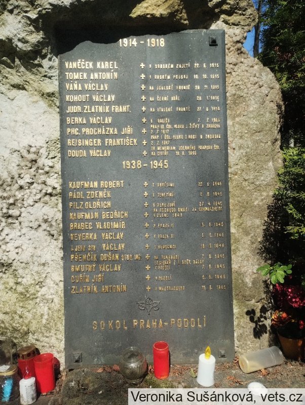 V roce 1945 pankrácký Sokol ve své budově slavnostně odhalil pamětní desku připomínající členy, kteří za okupace v odboji přišli o život. Po zbourání budovy byla deska přemístěna na podolský hřbitov,