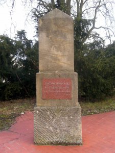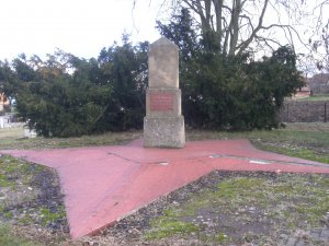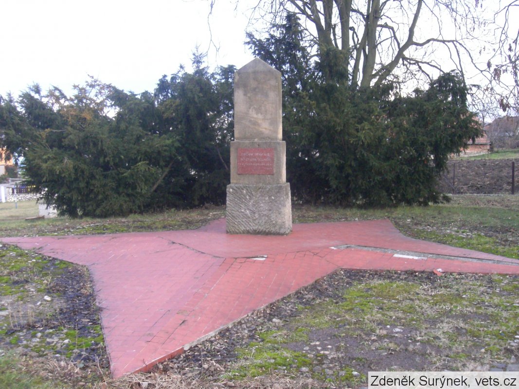 Pomník stojí na místě, kde stávala kaple věnovaná obětem 1. světové války. kaple byla zbořena v roce 1946.