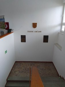 Umístění: Zlechov 540, Obecní úřad Zlechov, vstupní halaNápis: