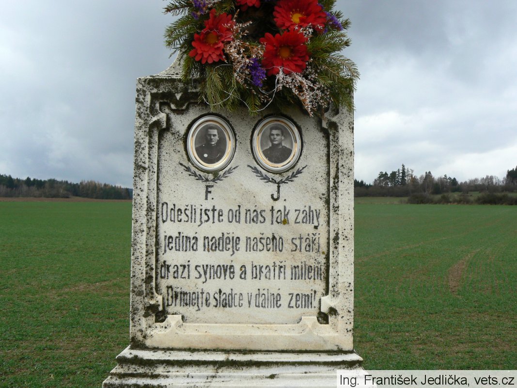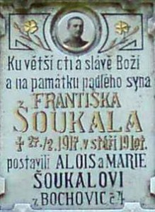 Vojín František Bárta, nar. Bochovice, Třebíč, stár 26 roků, příslušník 81. pěší pluk. Zemřel 14.11.1914 v nemocnici v Orlové, okr. Fryštát, Slezsko. Pohřben 15.11.1914 na hřbitově v Orlové.