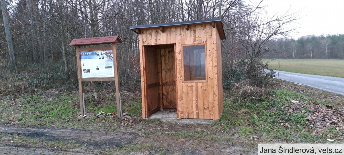 Umístění: Čejkovice, autobusová zastávka Habrovka, mezi obcí Pohled a ČejkoviceNápis: