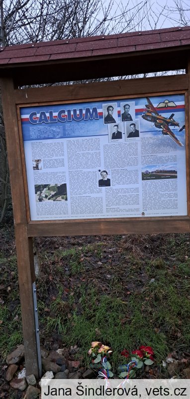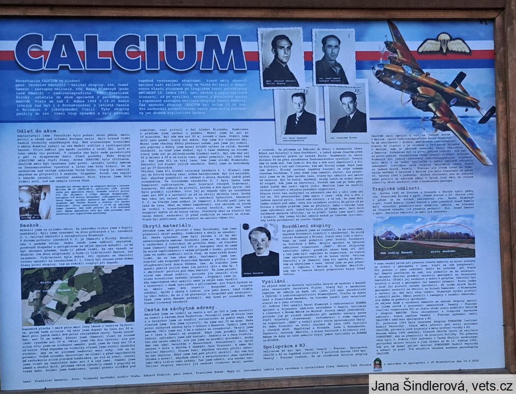 Další text na informační tabuli na místě seskoku . Ta byla vyhotovena ve spolupráci s VÚA Praha, místním OÚ Mladoňovice a dalších složek, s datem 14.5.2022.