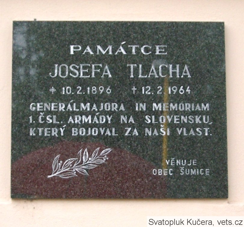 Tlach Josef, generálmajor in memoriam, nar. 10.2.1896, Šumice okr. Uherský Brod. V RU armádě sloužil od 15.3.1915 u pěšího pluku jako aspirant. Zajat 10.10.1916, Nová Vas. Do čs legií v Itálii se přihlásil 25.12.1916, Sulmona. Zařazen 25.4.1918 jako podporučík k 32. pěšímu pluku. Demobilizován 31.12.1919 jako nadporučík.