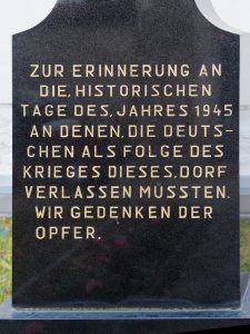 Na památku historických dnů roku 1945, kdy Němci museli v důsledku války opustit tuto vesnici.