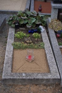 Podle informace od místní obyvatelky jde údajně o hrob čs. vojáka, který zde zahynul při železničním neštěstí během transportu.