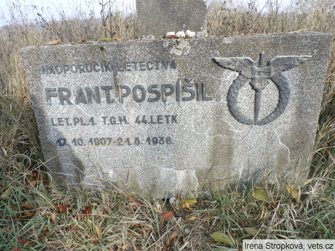 † npor. František Pospíšil od LP1, rodák z Kutné Hory. Při závěrečných cvičeních při nalétávání na pozemní cíl zahynul jeden z nejlepších stíhačů – psáno v časopisu letectví 1936, č.9, str. 372