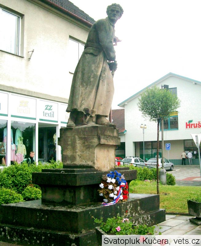 Pomník byl odhalen 26.10.1924 na památku 57 padlým v I.sv. válce. Autor akademický sochař Cyril Zatloukal se vrátil z ruského zajetí v roce 1921. Socha musela být na příkaz německého velitele odstraněna po té, co se na její hlavě objevila dne 28.10.1939 trnová koruna s trikolorou. Ve stejný den byl zatčen i Cyril Zatloukal, který byl do konce války vězněn v koncenrtačních táborech. Socha byla do konce války tajně uložena na zámku Nový Světlov a opět instalována 28.10.1945.