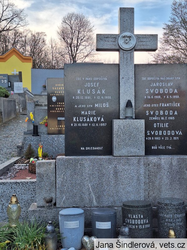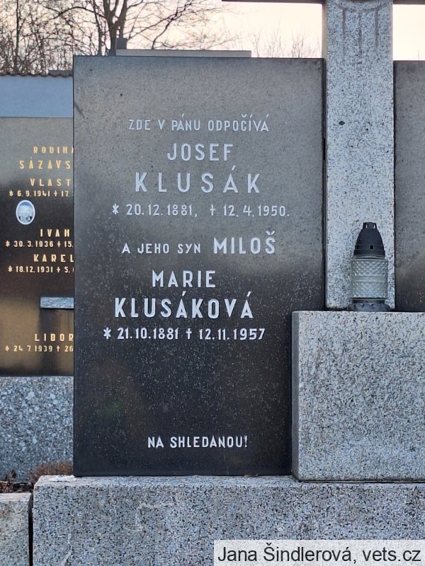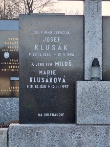 Josef Klusák, nar. 10.12.1881 (dle matriky 20.12.1881, jak je i na náhrobku) Náměšť nad Oslavou, sedlář, R-U útvar v době zajetí: 81. p. pluk, datum a místo zajetí: 4.11.1918 Itálie, datum zařazení: 29.11.1918, jednotka: 1. jízdní švadrona (Čs. legie v Itálii), vojín, konec v legiích: 1.8.1919 demobilizován.