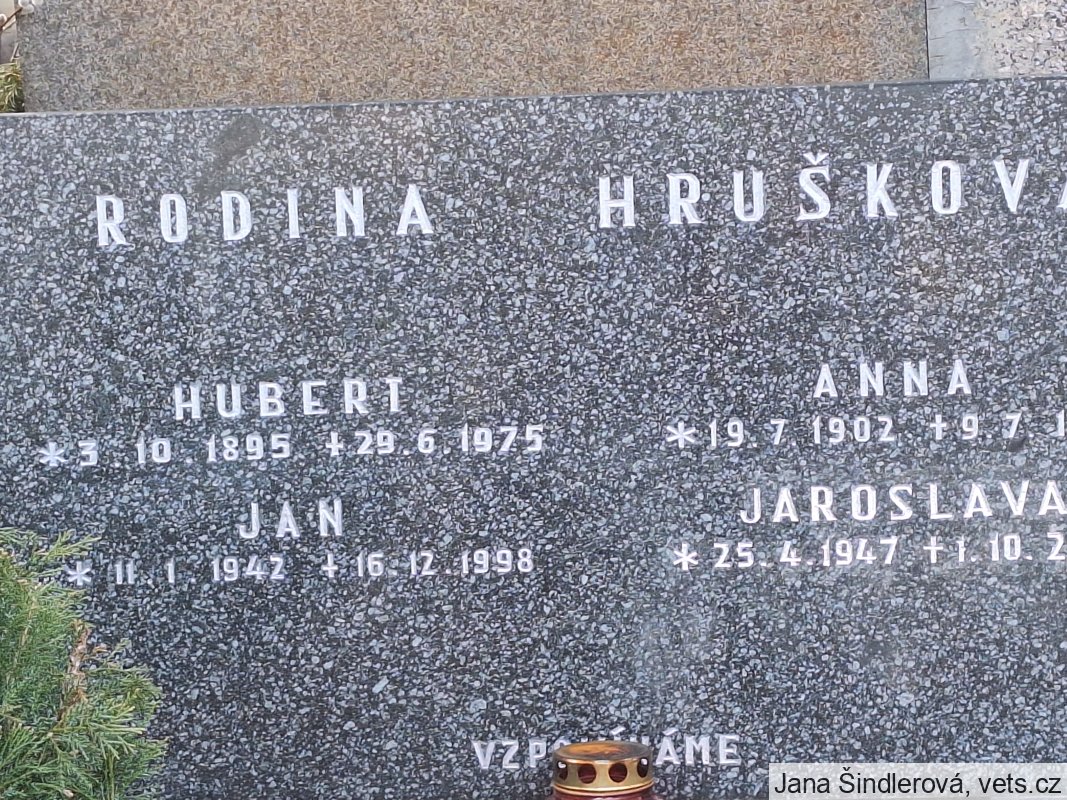 Hubert Vincenc Hruška, nar. 3.10.1895 Královo Pole, Brno, řezník, prezenční služba u R-U útvaru: 25. zem. p. pluk, v době zajetí: 24. zem. p. pluk, datum a místo zajetí: 21.3.1915 Přemyšl, datum a místo podání přihlášky: 2.9.1917 Borispol, datum zařazení: 9.9.1917, jednotka: 7. střelecký pluk (Čs. legie v Rusku), vojín, konec v legiích: 23.7.1920 vrátil se do vlasti.