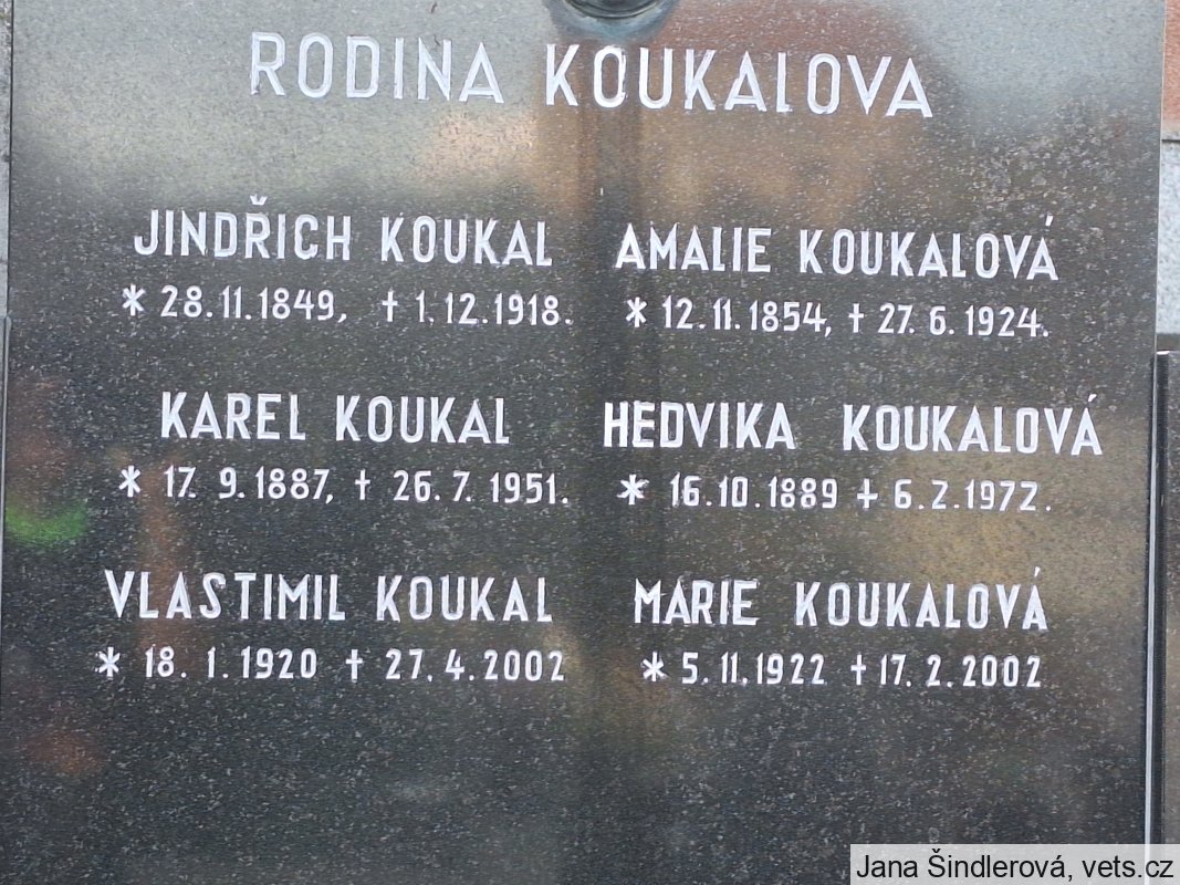 Karel Koukal, nar. 17.9.1887 Náměšť nad Oslavou, domovská obec: Brno, elektromechanik, pitevní mistr, prezenční služba u R-U útvaru: zdravotní oddělení, R-U útvar v době zajetí: zdr. odd., 5. san. baterie, datum a místo zajetí: 2.11.1916 Karpaty, šikovatel, datum a místo podání přihlášky: 23.12.1916 Kyjev, datum zařazení: 23.8.1917, jednotka: 1. střelecký pluk, (Čs. legie v Rusku), desátník, konec v legiích: 11.11.1920 demobilizován, poslední útvar: pracovní rota, koňský záložní dvůr, četař.