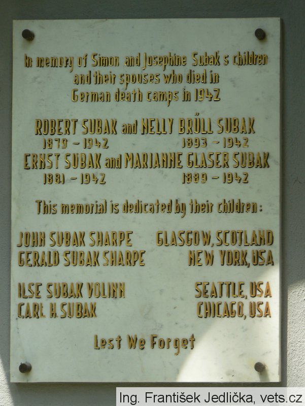 Poznámka: In memory of Simon and Josephine Subak 5 children