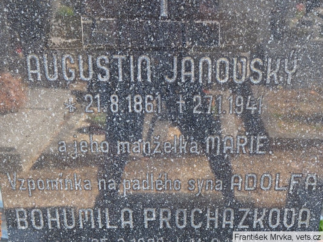 Janovský Adolf, vojín, pěší pluk 81, nar. 1897 Třebíč. Padl 15.5.1916, Sich Lizzama, Rovereto, Tivoly (opsáno z rukou psaného zápisu). Pohřben 16.5.1916 Lizzama.