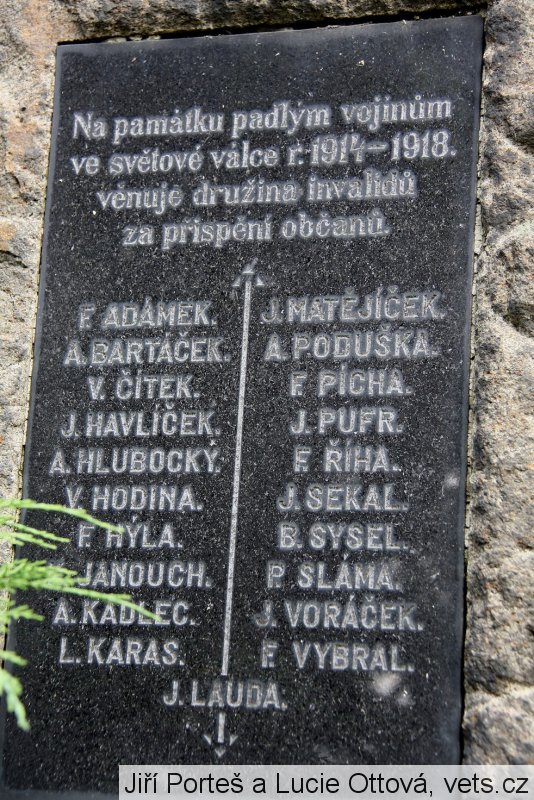 Padlým vojínům z Klokot - Všechova - Zahrádky 1914 – 19.