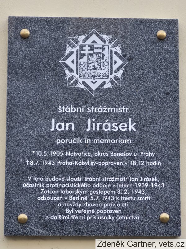 V této budově sloužil štábní strážmistr Jan Jirásek,