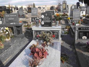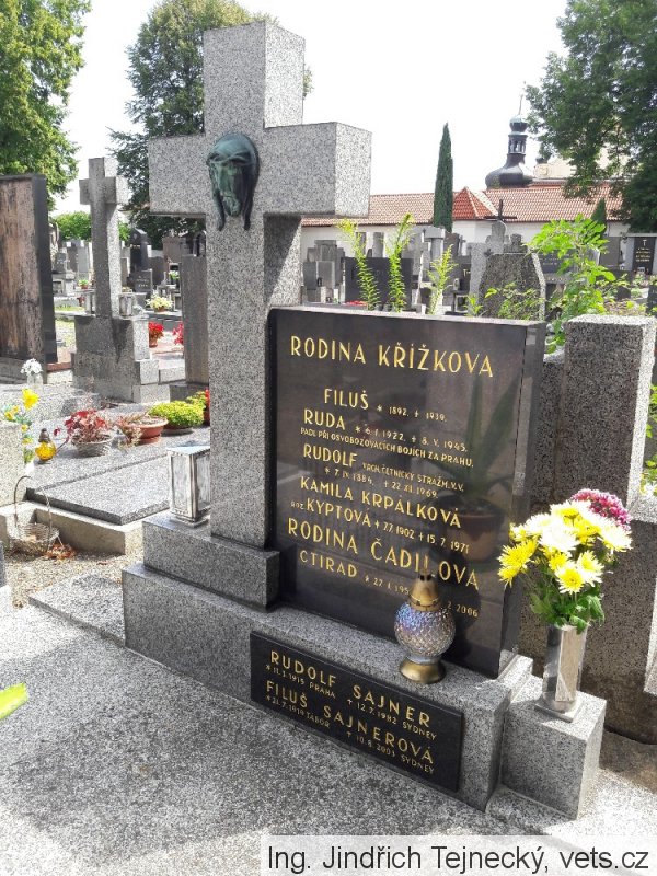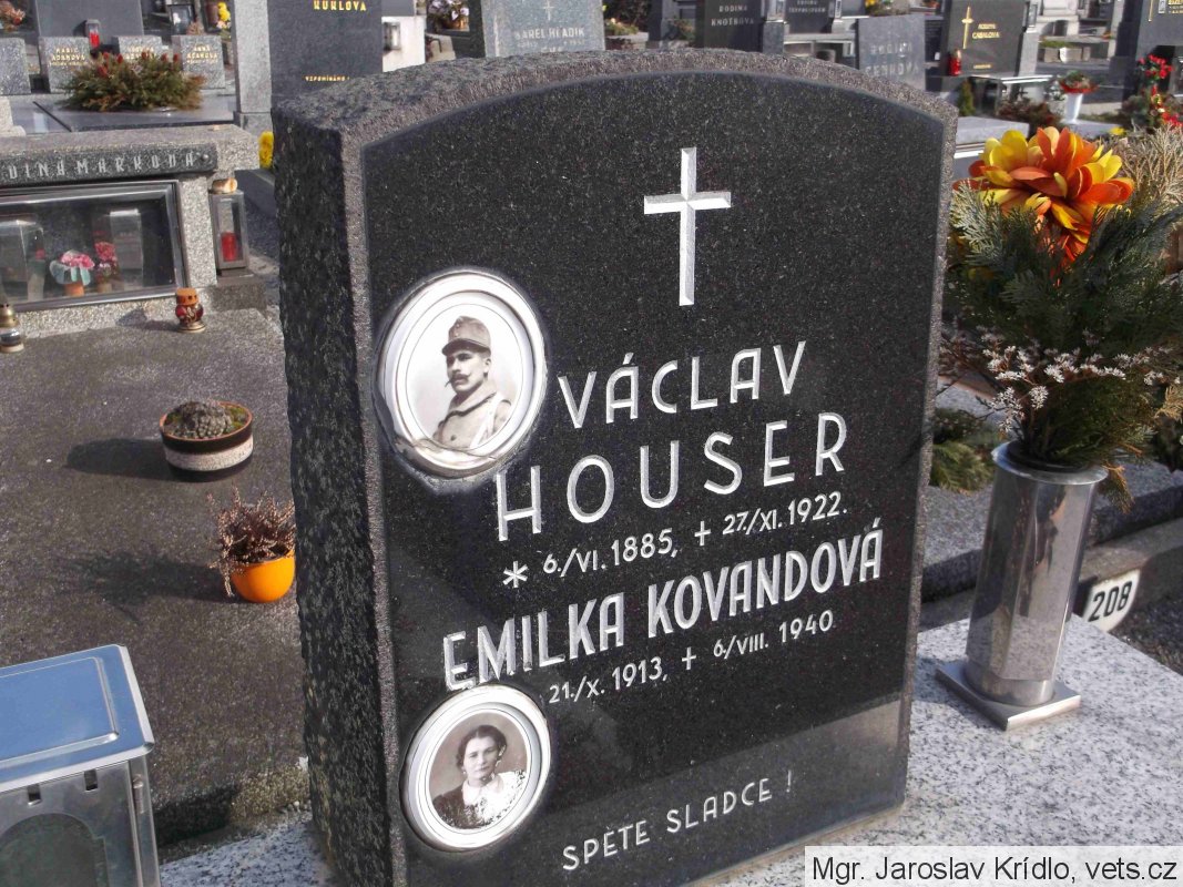 (datum úmrtí na náhrobku a v záznamech Vua Praha se liší)