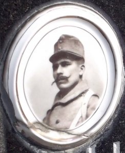 Foto vojáka v uniformě s legionářskou čepicí.