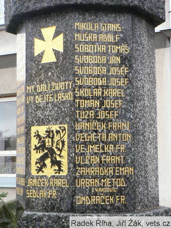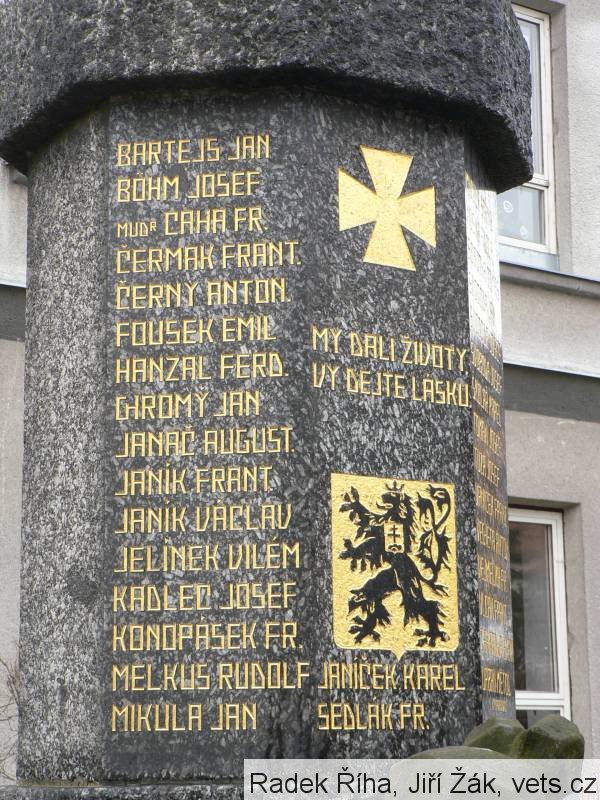 Pomník slavnostně odhalen 8.9.1926. Autor p. Činčera z Třebíče. Cena 15.000,- Kč. Do podstavce byl zazděn v železné rouře pamětní spis o postavení pomníku. (zdroj databáze CEVH MO ČR)