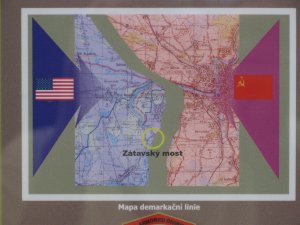 Stanoviště bylo na západní straně mostu, na východní byla hlídka Rudé armády. Situaci přibližuje popiska s mapkou demarkační linie. Zkratkovitý text v angličtině na PD odpovídá vzkazu vyrytému na zábradlí mostu a znamená: 1945 U.S.ARMY HEADQARTERS POST 119-E.COMPANY H., 376th INFANTRY REGIMENT, 94th INFANTRY DIVISION. V českém překladu: V roce 1945 velitelské stanoviště americké armády č.119 E. a H. roty, 376. pěšího pluku, 94. pěší divize.