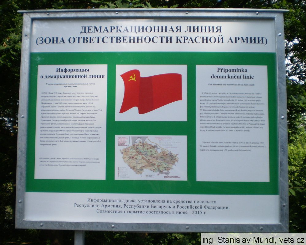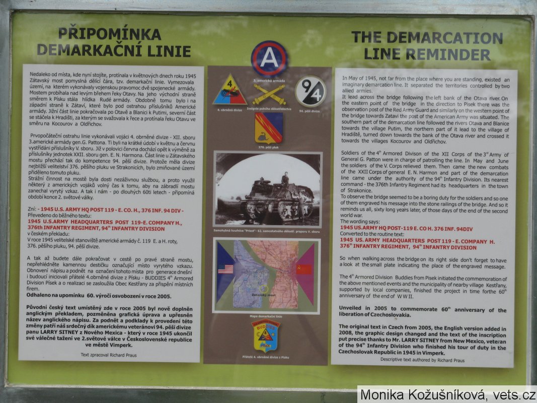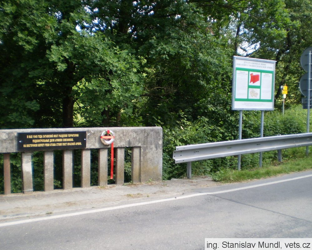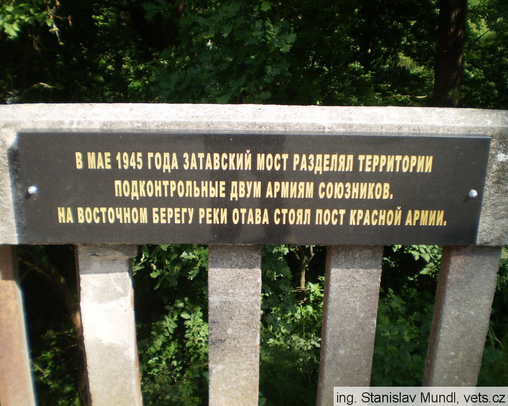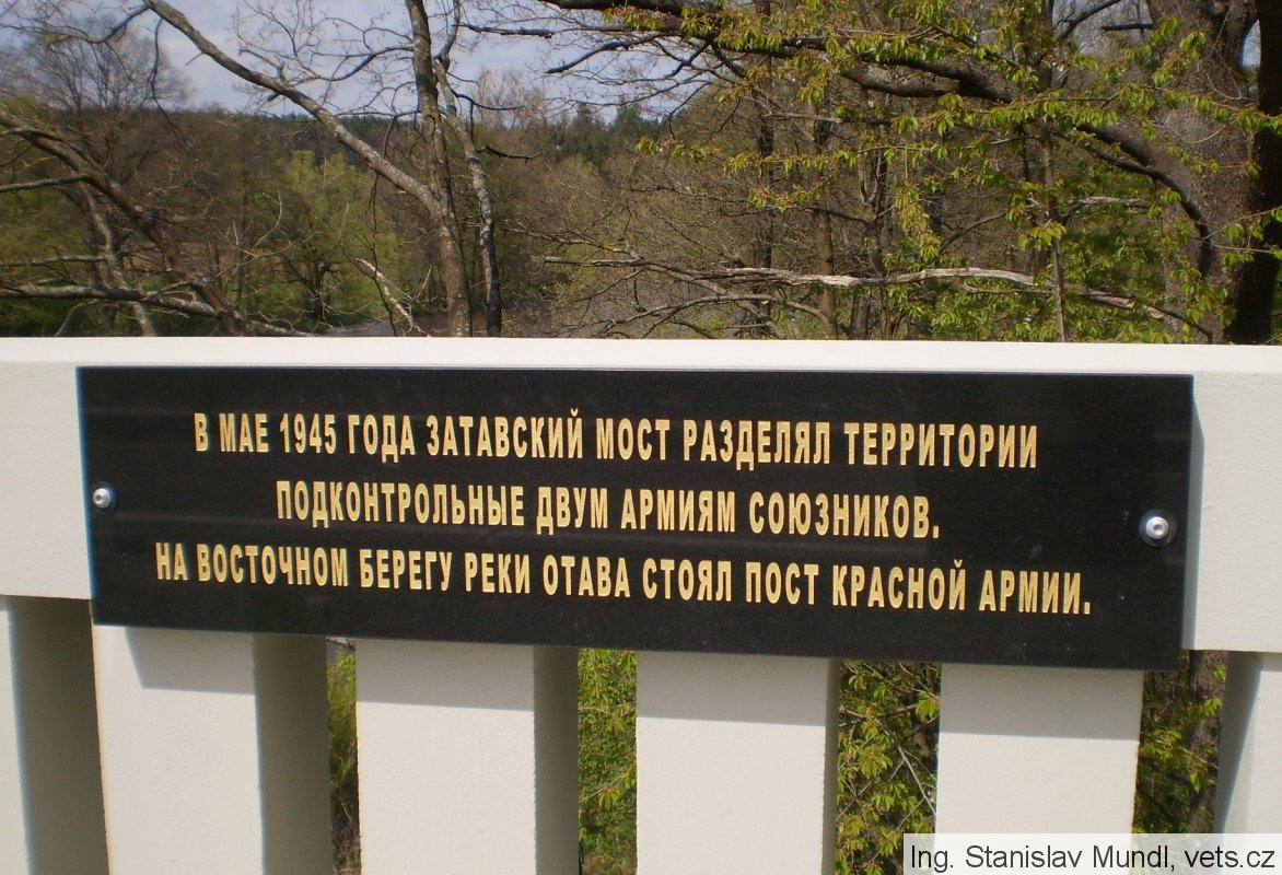 17.června 2015, na Zátavském mostě u Písku, na pravém břehu, byla odhalena pamětní deska připomínající stanoviště Rudé armády na demarkační čáře, která tady vedla středem toku řeky Otavy. Z iniciativy Klubu vojenských důchodců v Písku byla deska a infotabule zřízena Ruskou ambasádou, jejíž představitelé se akce zúčastnili. Přítomni byli i představitelé ambasád Arménie, Běloruska a USA, delegace ČSBS s jejím předsedou a předsedkyní ZO ČSBS Písek. Své zástupce vyslalo také město a OV KSČM. Projevy přednesli zástupci všech zúčastněných ambasád a předseda ČSBS. Ten a Američan v češtině, ostatní rusky. Na všechno svítilo na plno sluníčko.