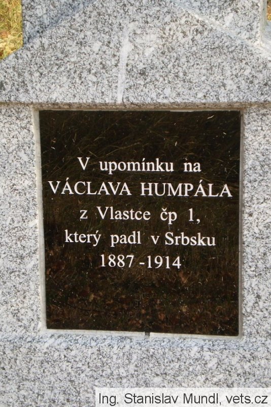 Umístění: Vlastec, z místní komunikace směr nádraží, odbočit doprava přes železniční trať asi 300 m polní cestouNápis: