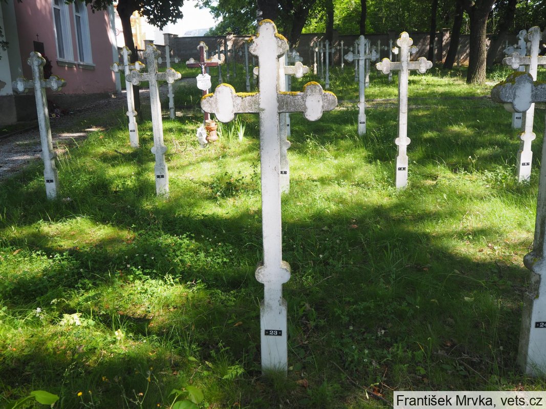 Ustin Litviněnko, nar. 1885 Berdany, Tavvycza, Rusko, vojín ruského pěšího pluku č. 324 - 15. rota. Zemřel v místní vojenské nemocnici 3.11.1916 na TBC, pohřben do hrobu č. 80.
