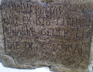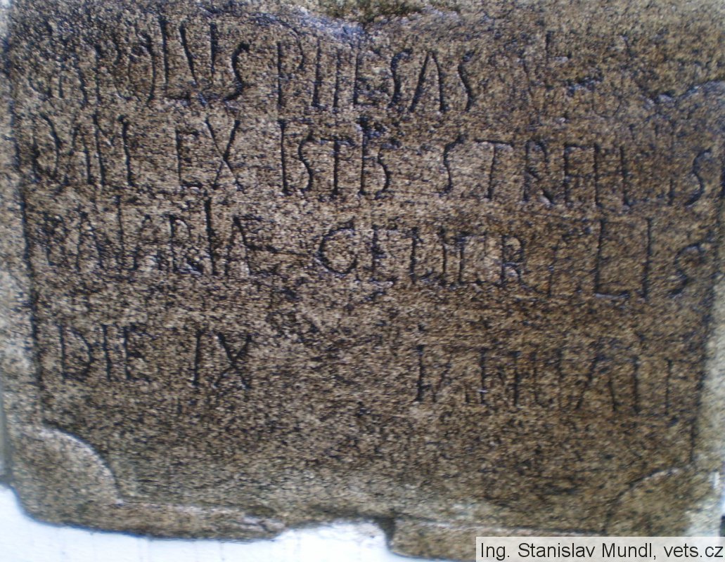 „Zastav se poutníku. Co já jsem ty budeš. Chtěje dobýti vítězství, vstoupil jsem do Čech. Palmu <vítězství> podstupuji smrti a odpočívám pod tímto kamenem doufaje ve vzkříšení. Karel Piesasque, jeden z udatných generálů bavorských. Dne 9.ledna.“