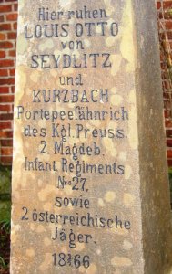 Seydlitz, von: Portep.-Fähnrich, 2. Magdeburgisches Infanterie-Regiment Nr. 27, 1. Komp. Příslušný v Berlínĕ. +4.7.1866 na následky střelného poranĕní pravého ramene a zad. Databáze pruských ztrát uvádí pouze jméno von Seydlitz. (zdroj: Verlustlisten der Preußischen Armee 1866)