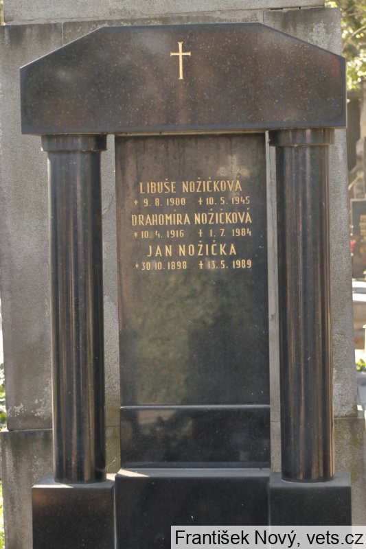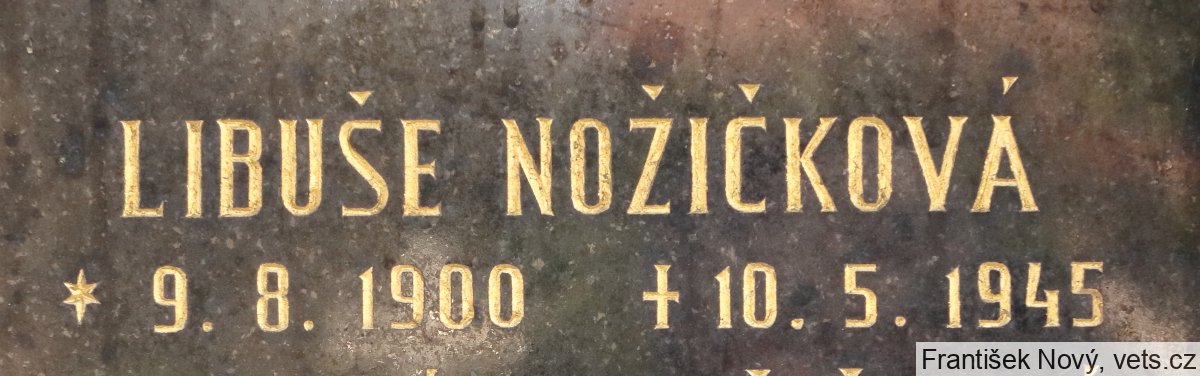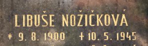 Libuše Nožičková, roz. Safrtalová *9.8.1900 Běhánky, o. Teplice-Šanov, v domácnosti, Praha XVI Smíchov, Bavorská 41, raněna v Praze, zemřela 9.5.1945 ve Všeobecné nemocnici v Praze