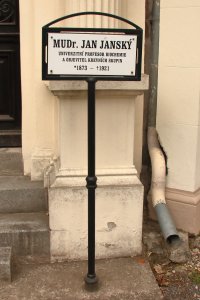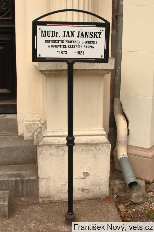 Jan Janský (3.4.1873 – 8.9.1921), neurolog a psychiatr, objevitel čtyř základních krevních skupin, během první světové války nastoupil do služby jako lékař na frontě. Po dvou letech, v roce 1916, byl po prodělaném srdečním infarktu zproštěn služby a vrátil se do vlasti.