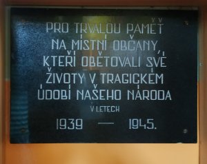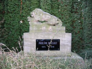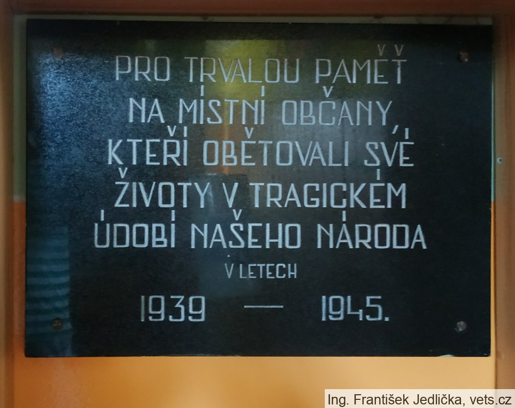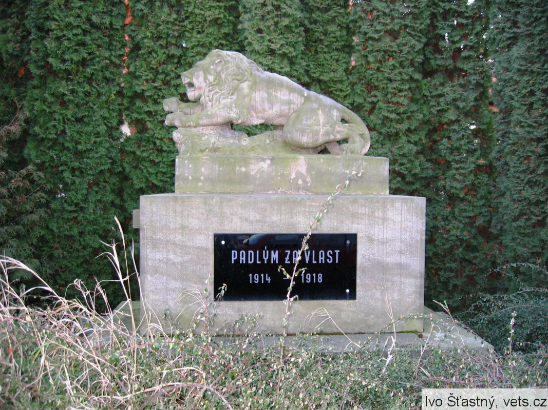 Pomník obětem 1. světové války. Odhalen 31.5.1936. V hlavním kvádru pod sochou lva je v měděném pouzdr uložen pamětní list. Obsahuje seznam padlých občanů obce (některé prameny uvádějí 46, jiné 48 občanů). Autorem je Kamenická škola Hořice v Podkrkonoší. Provedli Josef Holeček, Skála. Kvádr nese nápisy, na přední straně: "Padlým za vlast 1914 - 1918", na zadní straně: "Věnováno 31.V.1936 S.K:METEOREM: ZA PŘISPĚNÍ VŠECH KORPORACÍ A OBČANŮ".