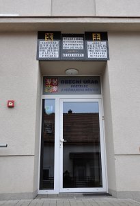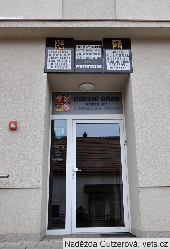 Umístění: Kostelec u Heřmanova Městce, Budova obecního úřadu (původně obecní škola), nad vchodem do budovy.